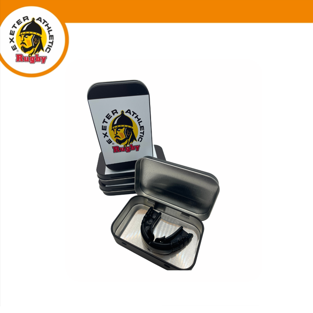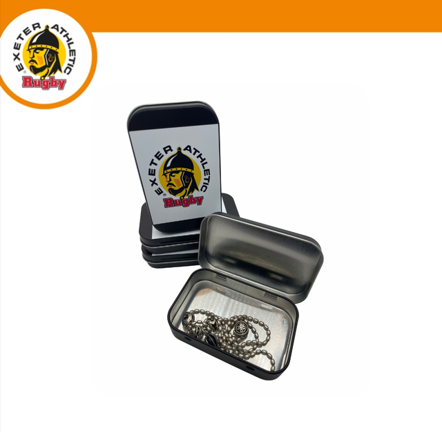 Exeter Athletic tin for storing jewellery or gumshields safely in your bag during training or games.